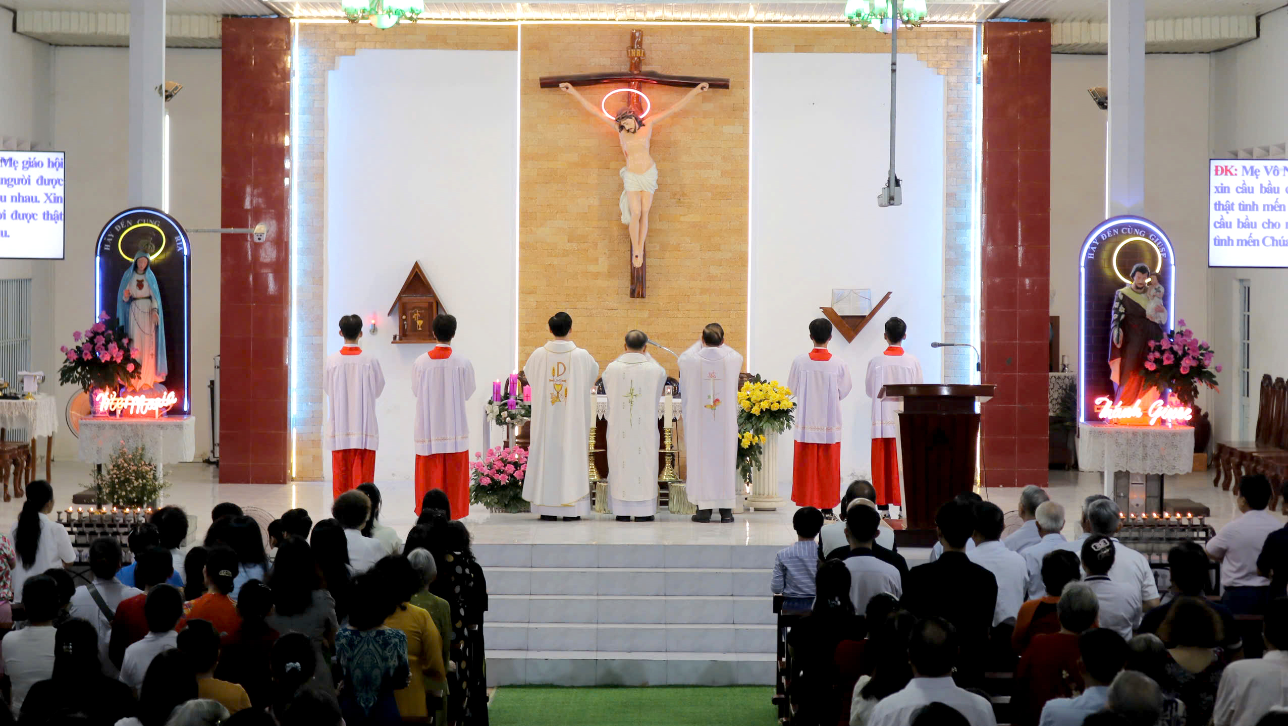 Khi chuông nhà thờ vang lên, toàn thể cộng đoàn đã trang nghiêm tiến vào tham dự thánh lễ. Ánh sáng vàng nhẹ phủ xuống cung thánh, tiếng ca vang lên từ ca đoàn khiến bầu khí trở nên linh thiêng hơn bao giờ hết.