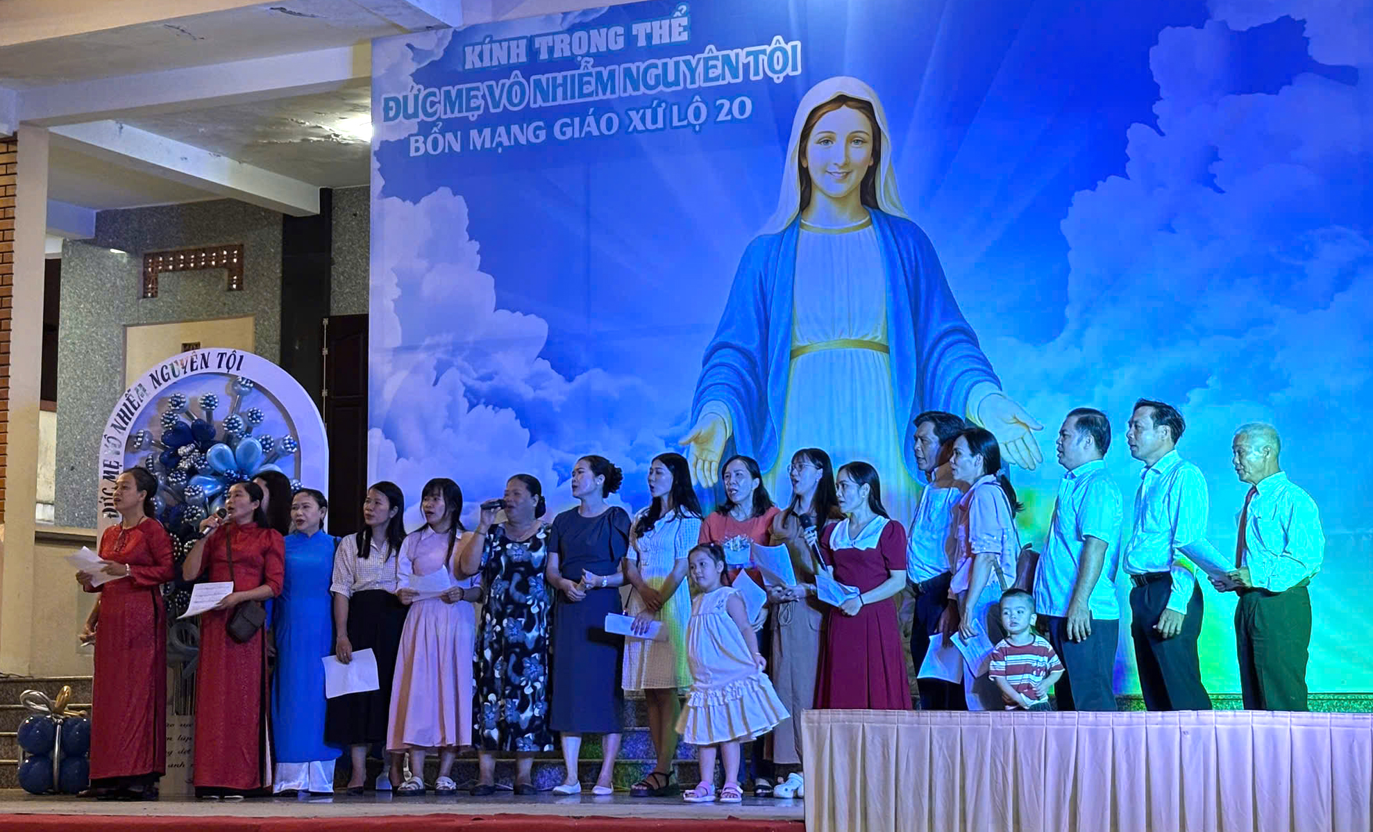 Đến tiết mục “Ave Maria” của ca đoàn Thiếu nhi, giọng hát trong veo của các em như nâng cả cộng đoàn lên trong lời kinh dịu dàng. Những ca đoàn người lớn như Monica, Thánh Gia, Hồng Nhiệm tiếp nối với các bài “Chúa Trong Đời Con”, “Năm Xưa Trên Cây Sồi”, “Trinh Vương Maria”, mang đến chiều sâu và sự trang trọng cho đêm văn nghệ.