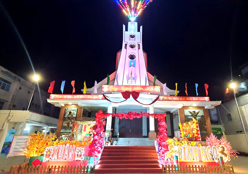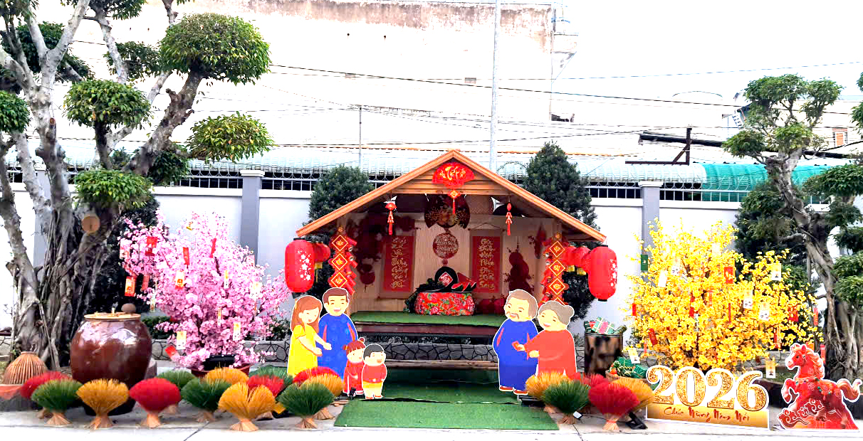Tết Bính Ngọ 2026, khuôn viên Nhà thờ Giáo xứ Đức Mẹ Vô Nhiễm – Lộ 20 trở nên ấm áp hơn nhờ những góc tiểu cảnh xuân.