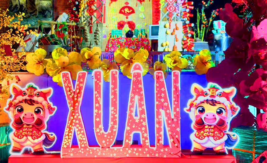 Không quá cầu kỳ, mỗi góc trang trí là một chút hoa, một chiếc đèn lồng, vài vật dụng quen thuộc ngày Tết… nhưng tất cả hòa lại thành không khí xuân rất đỗi thân thương.