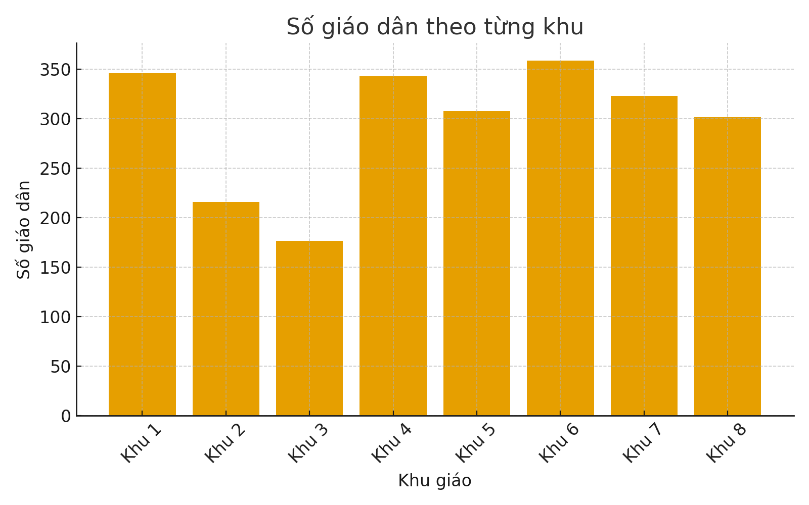 Các khu có quy mô giáo dân và hộ gia đình đông nhất gồm Khu 6, Khu 1, Khu 4 và Khu 7, trong khi Khu 2 và Khu 3 là hai khu nhỏ hơn.