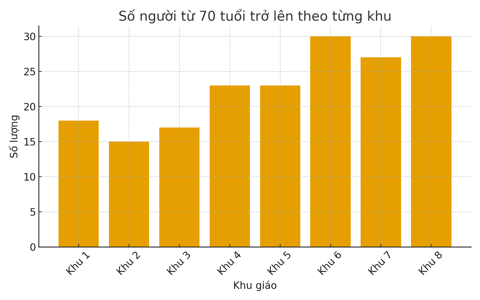 Giáo xứ hiện có 183 giáo dân từ 70 tuổi trở lên (tính từ năm 2026), chiếm gần 8% tổng số giáo dân. Đây là nguồn nhân lực quý báu, góp phần gìn giữ và truyền lại truyền thống đức tin cho các thế hệ sau. Phân bố theo khu cụ thể như sau: