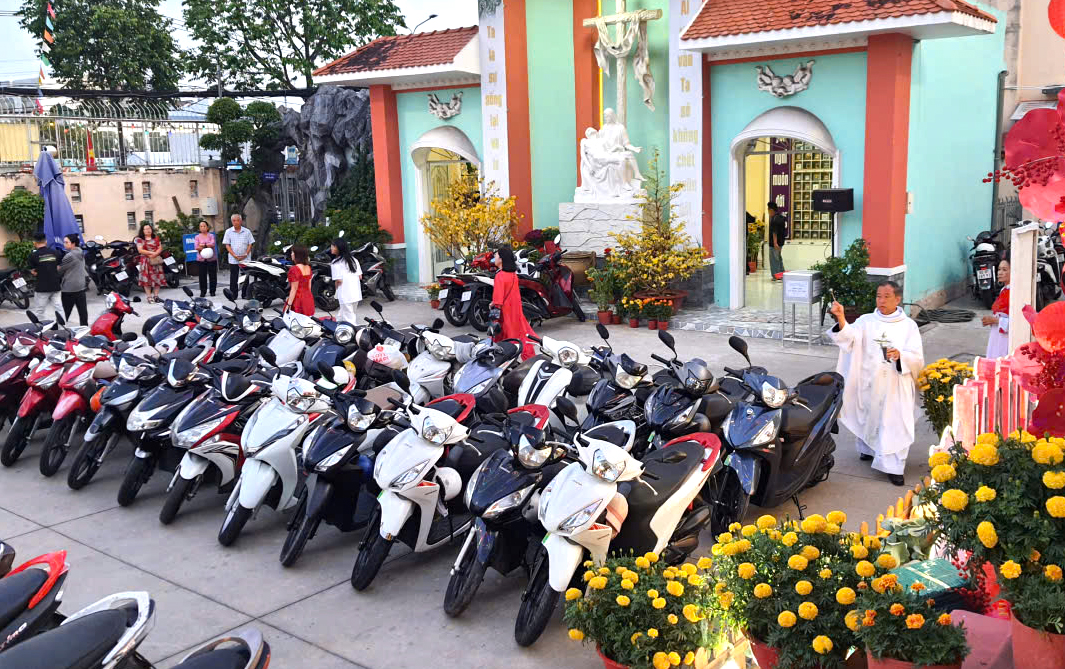 Sau Thánh lễ, Cha sở và Cha phó đã làm phép các công cụ lao động và xe cộ của giáo dân, xin Chúa chúc lành, gìn giữ và ban bình an trên mọi công việc, để qua đó Danh Chúa được tôn vinh và tình yêu thương được lan tỏa khắp nơi.