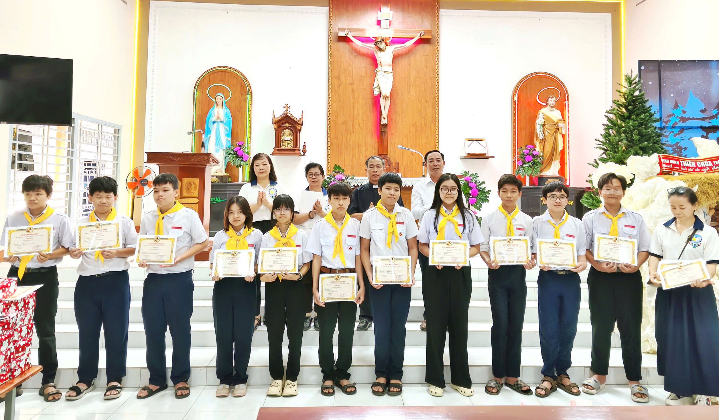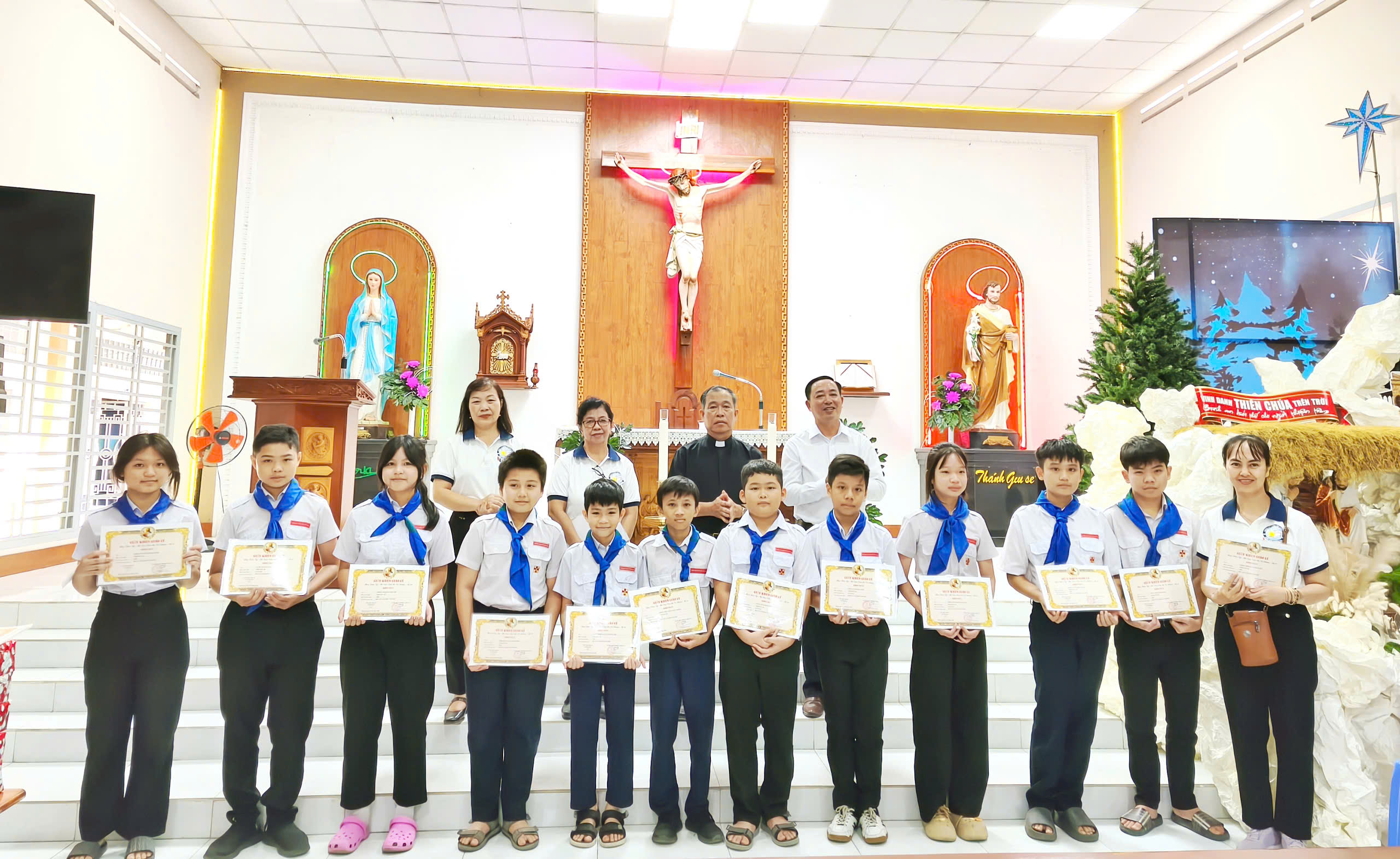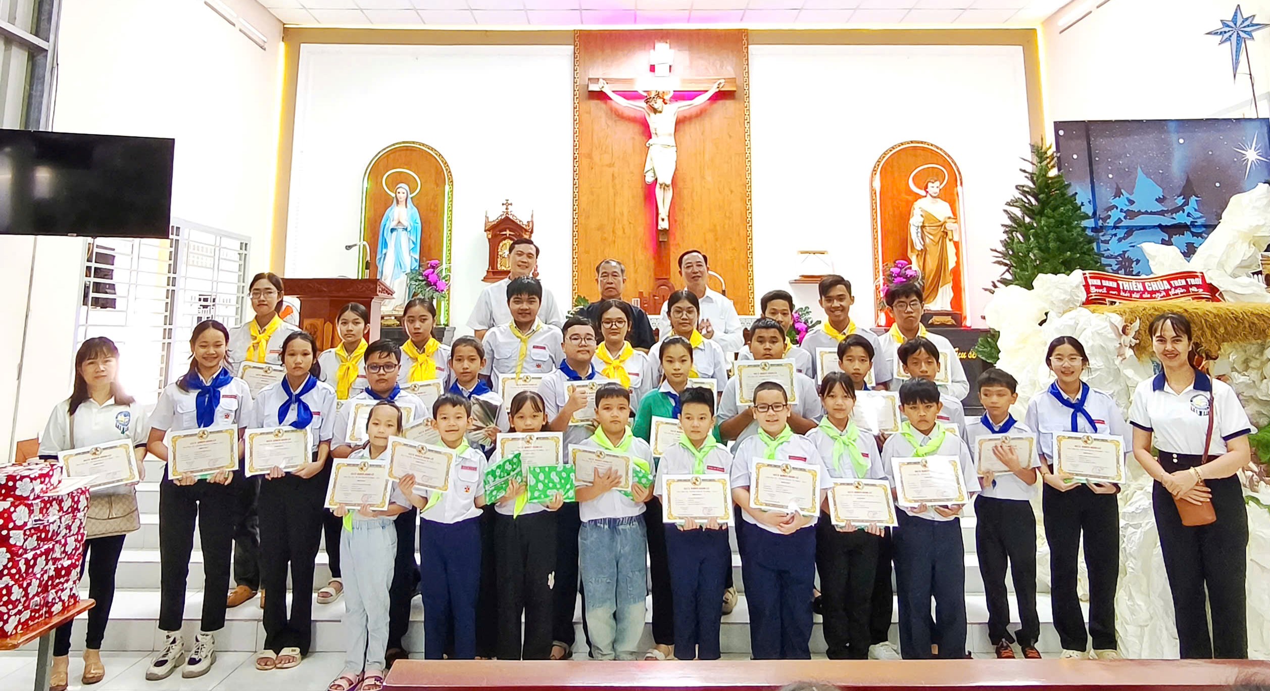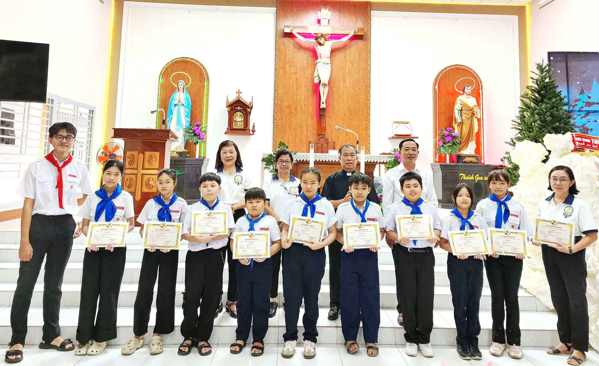 Trong học kỳ qua, các em duy trì nền nếp học giáo lý, kinh hạt, viếng Thánh Thể, sinh hoạt TNTT; đồng thời tham gia nhiều hoạt động ý nghĩa như Tết Trung thu, lần chuỗi tháng Mười, bác ái Mùa Vọng, làm hang đá Giáng sinh, xem phim sinh hoạt chung…